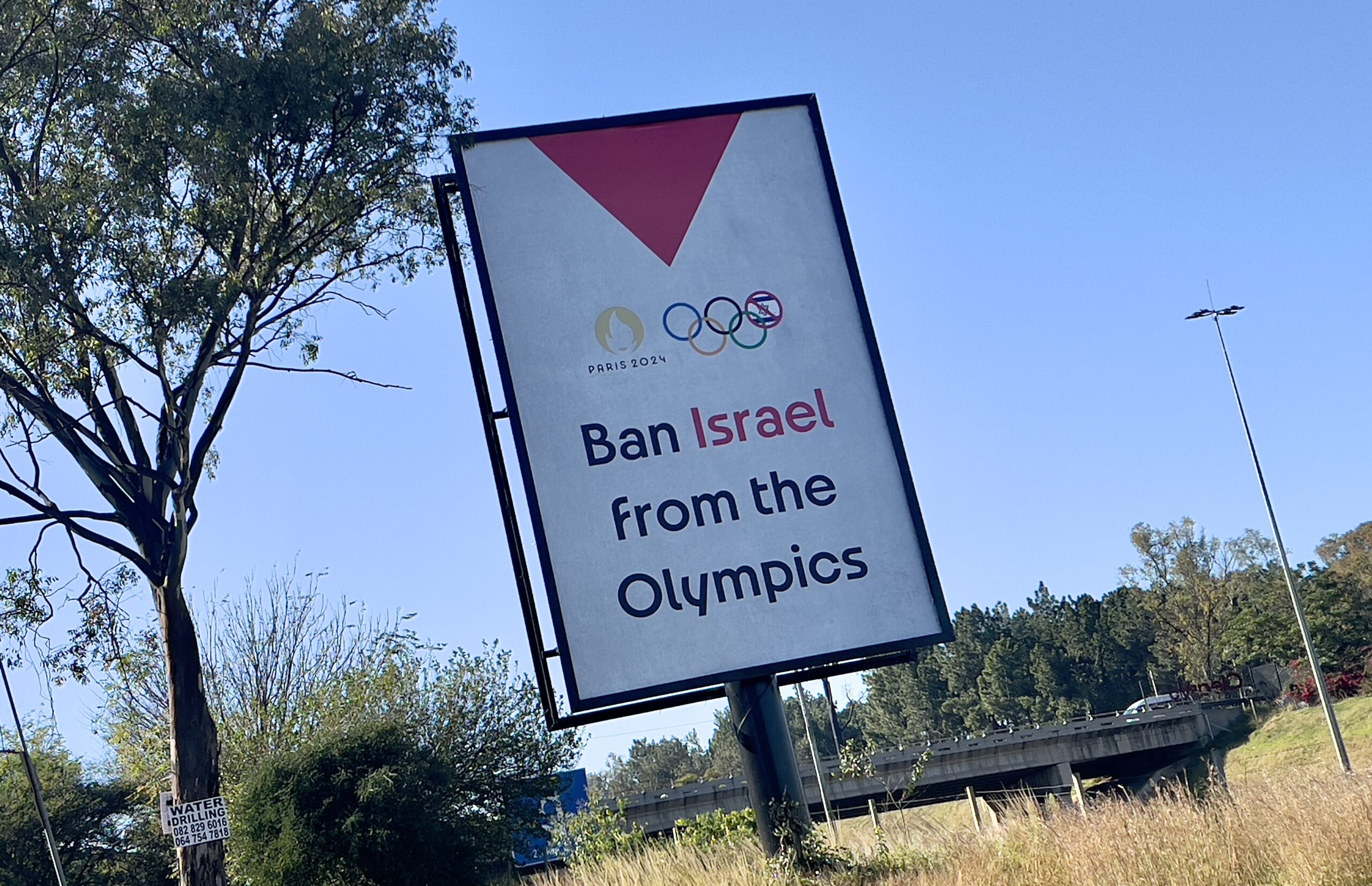 Johannesburg drivers have been confronted by multiple billboards calling for Israel to be banned from the Paris Olympic Games, which begins on 26 July this year. The anonymous boards have appeared in at least three places on the M1 and N3 highways, and possibly other locations. At least one has already been taken down.