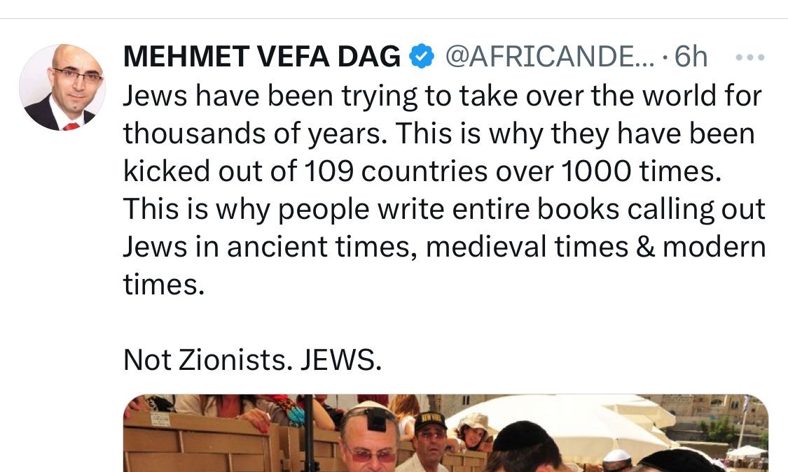 Also in July, Dag tweeted, “The fact that the Jews publicly attacked Christians at the opening of the Olympics yesterday [possibly referring to a Christian scene in the opening ceremony] is proof of how dangerous the Jewish faith is for all people of the world. It is time to stop the cruel Jews. Those who disregard the religious values of the three billion Christians in the world who have no place in the world. If you want to live humanely in this world under the same conditions as us, you will respect the religious beliefs of Christians and Muslims. Otherwise, it will not end well.”