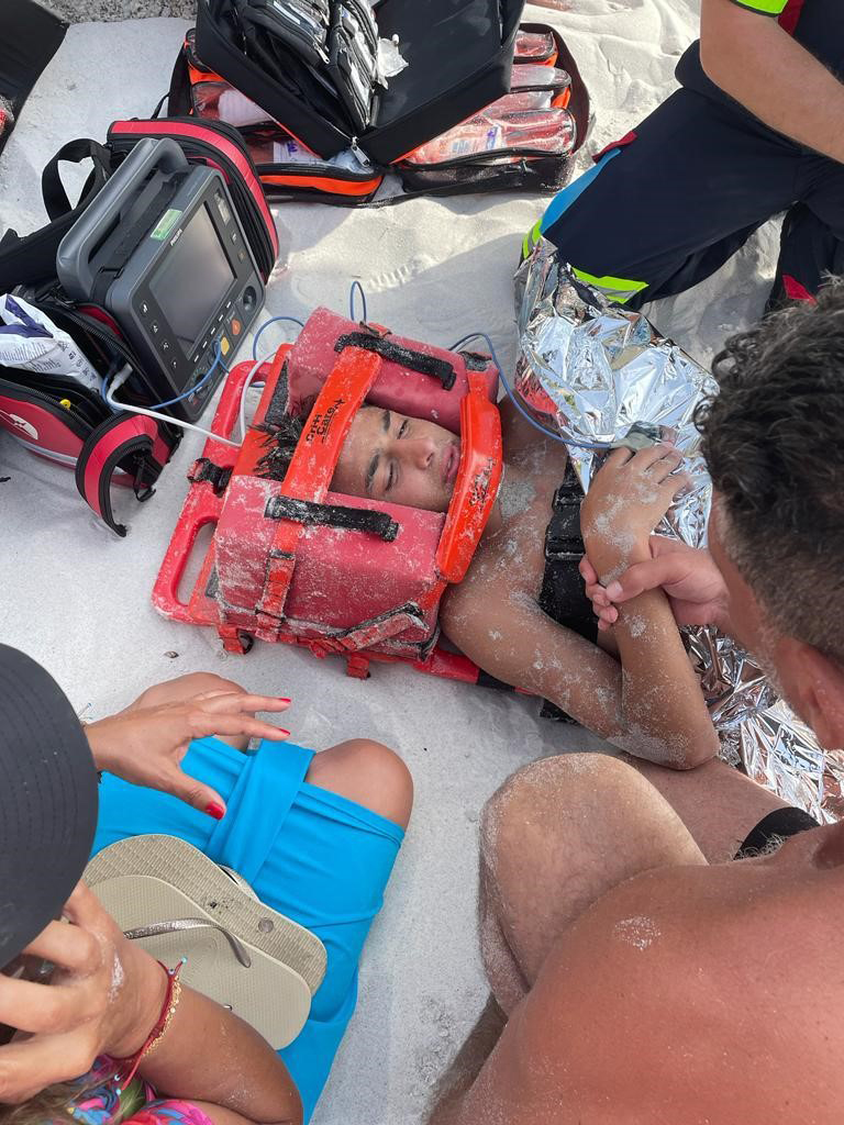 His panic-stricken friends nearby pulled him to shore, realising he was in obvious distress.