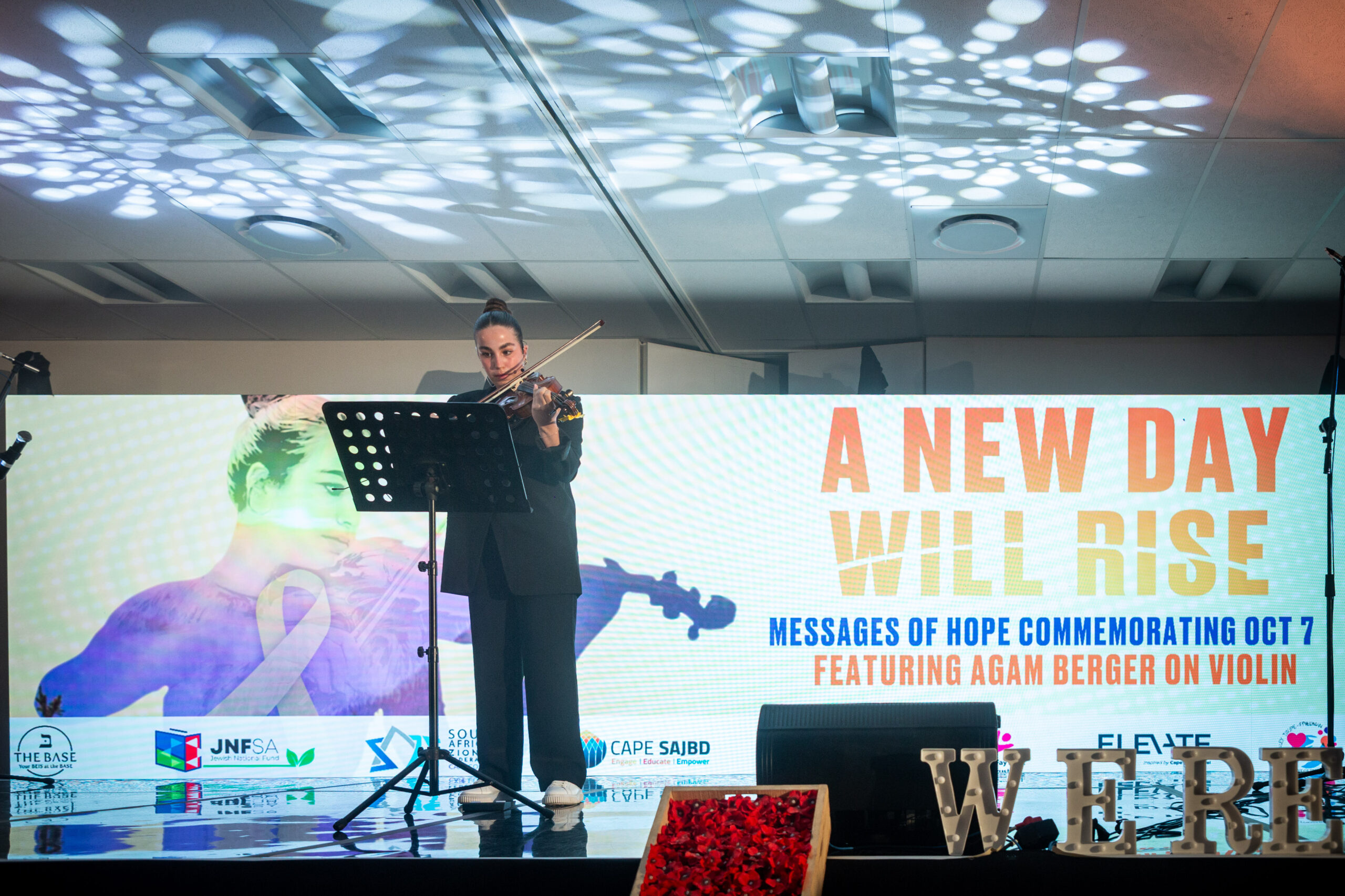 The Cape southeaster may have blown the Cape Town Marathon off course, but it couldn’t keep the Jewish community away from the 7 October commemoration “A New Day Will Rise”. Nearly a thousand people filled the Albow Centre in Gardens on Monday evening, 20 October, coming together to remember, weep, sing, and, in the end, dance again.