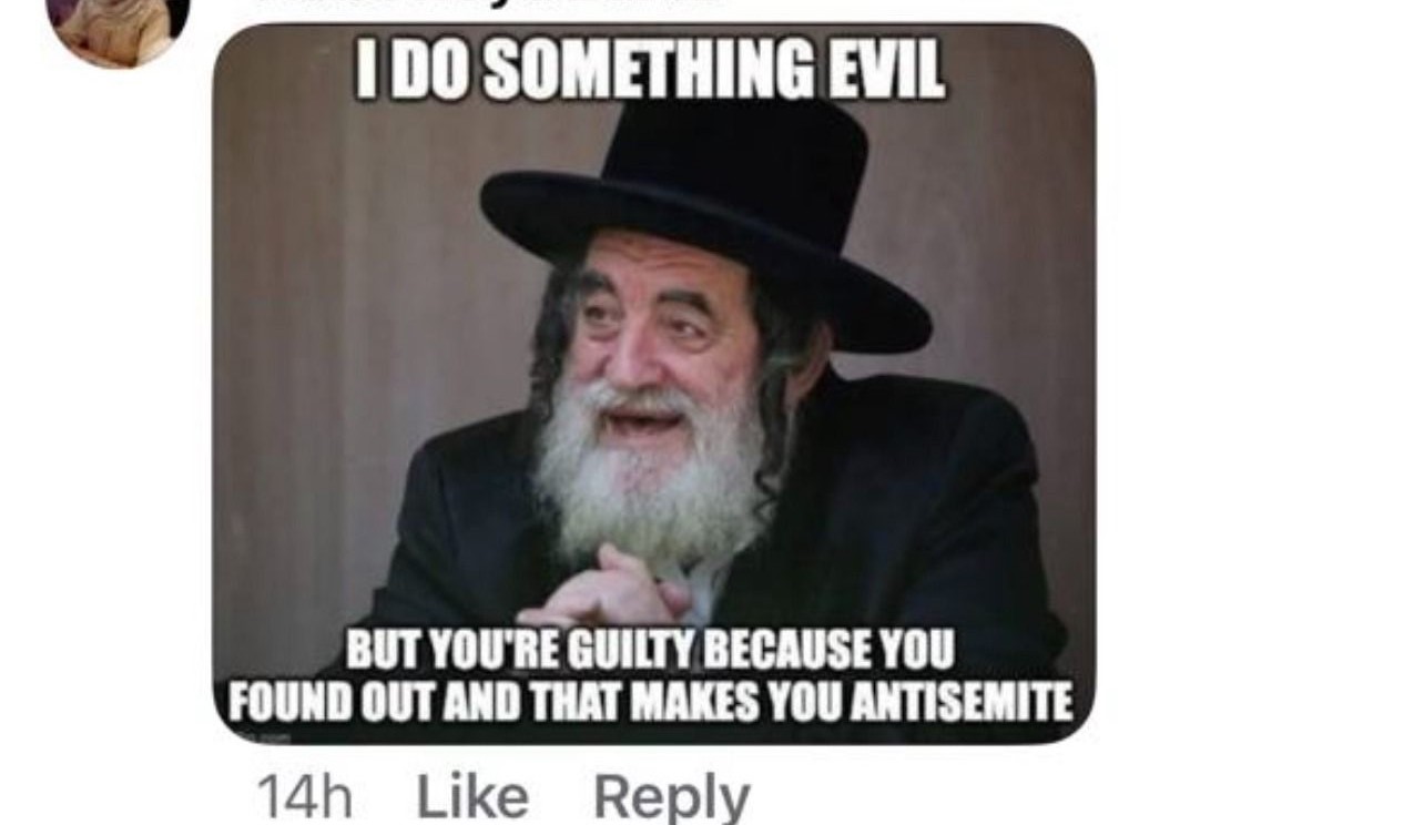 Another image she shared in July showed images of a white, Orthodox Jewish man alongside a black man. The Orthodox white man is labelled a “converted Jew” who is “Jew-ish”, while the black man is labelled an “actual Jew”.