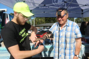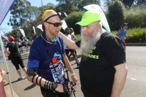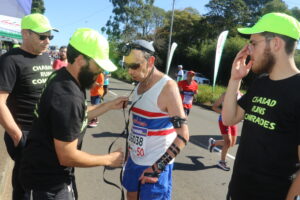 The following year, Wainer came equipped with more tefillin, and so the tradition began. Wainer understands that if people are in a hurry and don’t lay tefillin – his hugs and a brocha will suffice, or even just a wave of acknowledgement that he and his team are at the roadside, supporting all the Jewish runners.