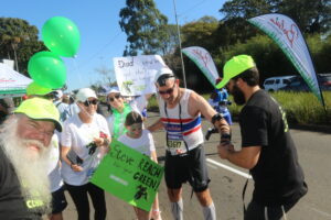 Brian Rodkin came from Canada, with his family kitted out in supportive posters, to run his ninth race. Rabbi Wainer even persuaded Rodkin’s dad, Sam, to put on tefillin – something he hadn’t done in 75 years.