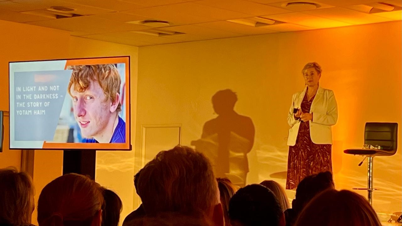 Said Iris, “I don’t have any tattoos on my body, and I don’t think I ever will. But I tattooed the dot and comma on my heart. We can use the dot when Yotam was killed. We can use the dot on 7 October. But I choose to use the comma, to continue to talk about Yotam’s legacy and what he believed in, to make the world a better place and unify society.