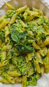 Penne with baby marrows and asparagus