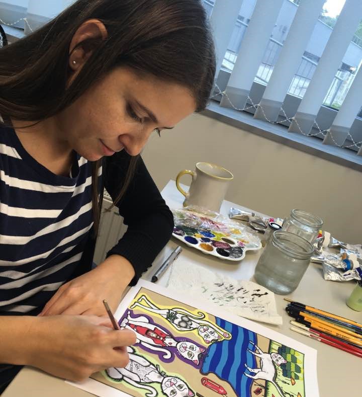 In her piece for the Herzlia alumni publication, Carolyn described her motivation and process. “I want to remind people of the importance of using imagination – a powerful tool, which, unfortunately, many of us are suppressing by immersing ourselves in technology. My inspiration arises almost entirely from my imagination. I play around with elements extracted from doodles to create new and unique compositions. My illustrations mostly depict fantasy worlds and the whimsical characters that exist within them. Unlike most illustrators today, I prefer to create by hand instead of on a computer. My preferred medium is gouache [a water-soluble pigment] watercolour, and fine liner pen on watercolour paper.